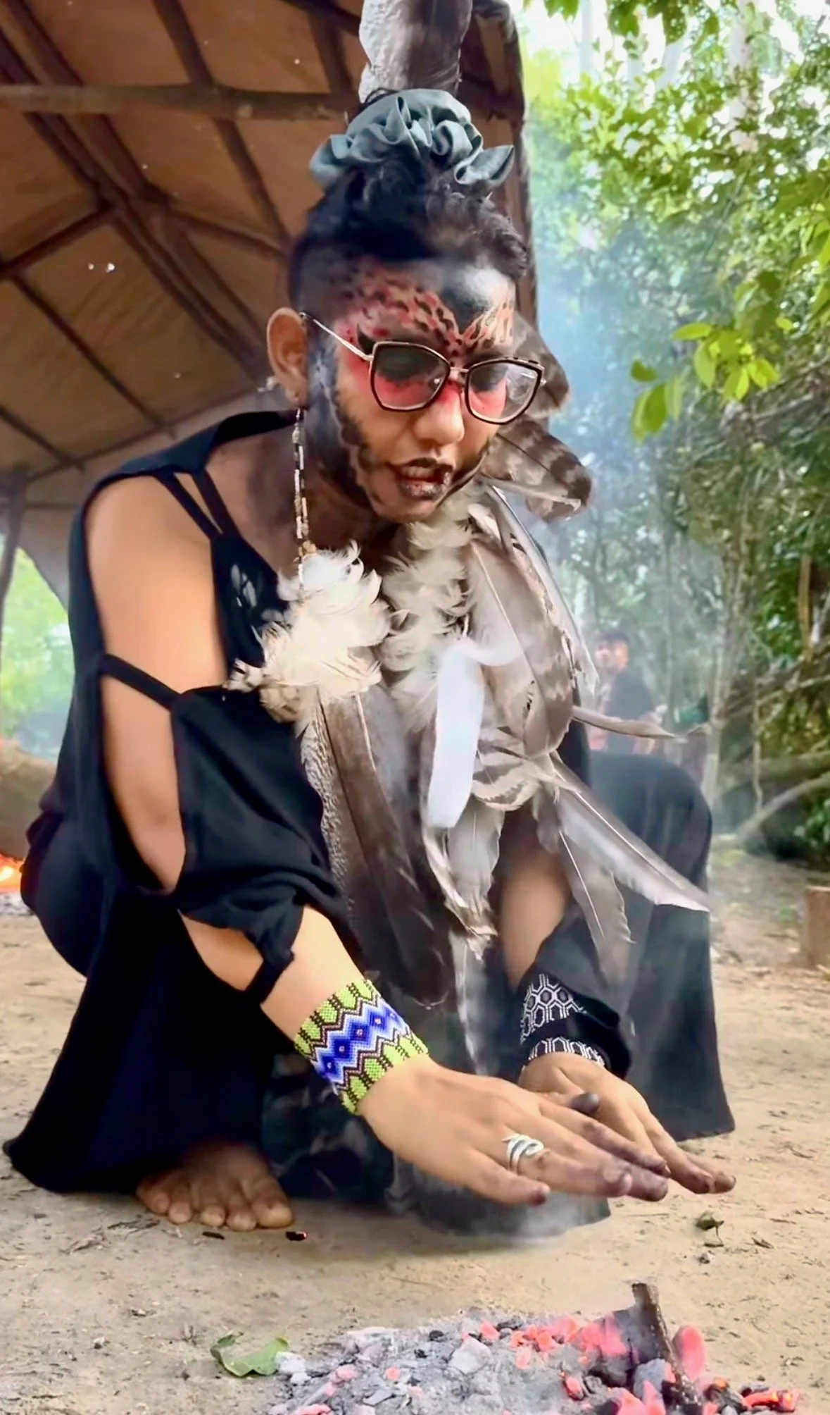 In the year 2014 she entered Samakẽi for 1 year in retreat outside the village guided by the Pajé Tata, in a quest to gain deeper knowledge about her people and Yawanawá spirituality.